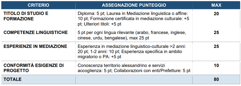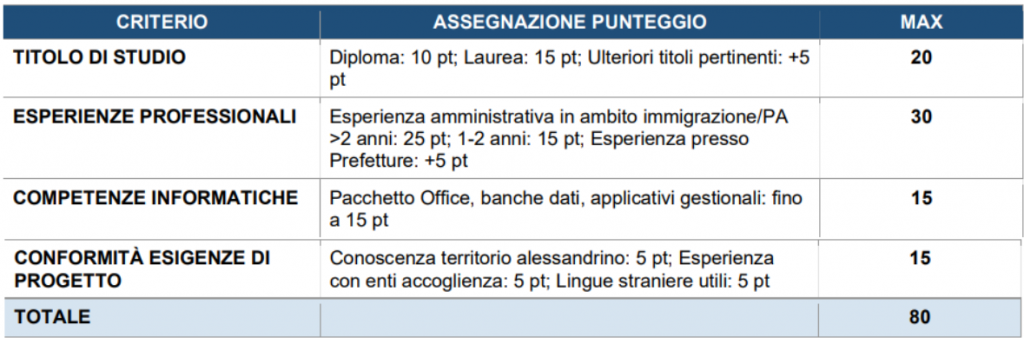 e) Titolo preferenziale: conoscenza del territorio alessandrino e dei servizi di accoglienza.